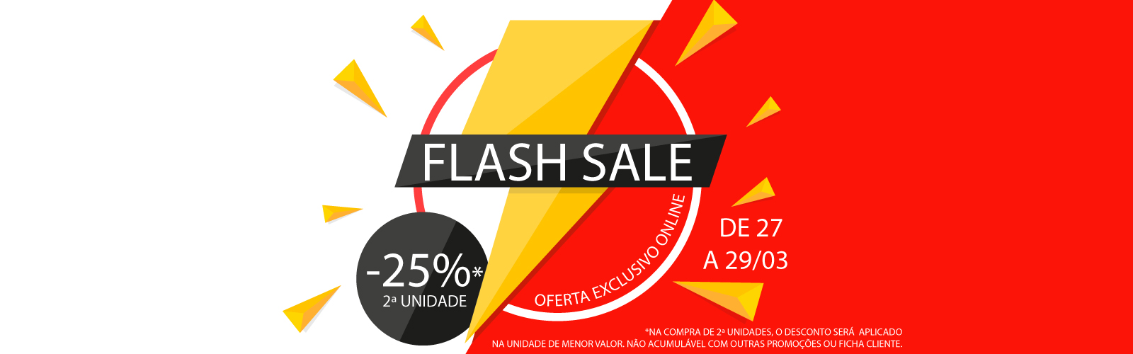 VENDAS FLASH! 25% DESCONTO IMEDIATO EXCLUSIVO ONLINE NA 2ª UNIDADE DE MENOR VALOR.