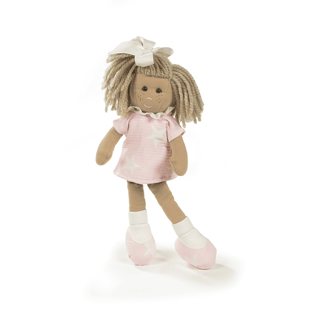 A La Nina - Boneca de Trapo Marta Vestido Estrela, a sua inseparável amiga. Boneca de trapo com vestido de estrela cor-de-rosa e branco.