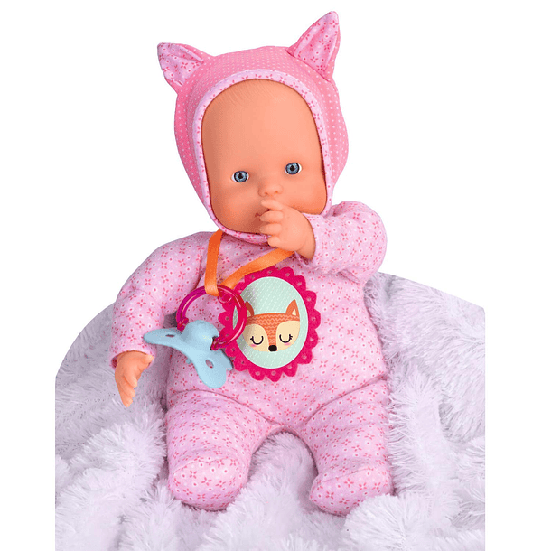 O Nenuco Soft 5 Funções - Rosa da Famosa tem corpo fofinho com chupeta e 5 funções. Ao apertar-lhe as mãos diz “papá” e “mamã” e se for a barriga ri-se. Para além disso, ao dar-lhe a chupeta faz o som de chuchar, mas se a tirares chora. Também pode colocar o dedo na boca como os bebés de verdade.