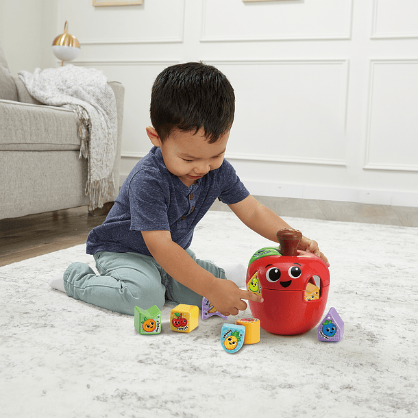 O V-Tech Baby - Maçã das Formas da Concentra em português em cada rotação…uma forma diferente! As crianças vão adorar explorar a Maçã das Formas com 10 formas únicas e originais. Carregar no manípulo em forma de caule para criar as formas únicas. 10 divertidos blocos com originais & 10 frutos para aprender. Em cada rotação uma forma diferente. Basta carregar no manípulo em forma de caule. A rotação cria formas únicas e originais. Inclui 10 formas diferentes com os nomes de frutos. Ideal para desenvolver a coordenação visual-motora e as habilidades cognitivas.